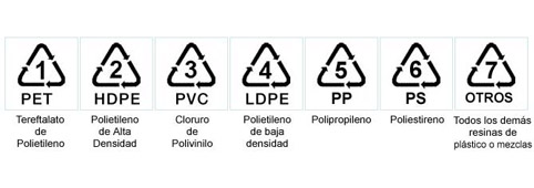 Las flechas que forman esa especie de estrecho anillo triangular son señal de que el producto plástico puede ser reciclado de alguna forma. Los números son una simple numeración y las letras son las siglas del tipo de plástico. Y como existe una gran diversidad de materiales plásticos, la tipología para identificarlos es va